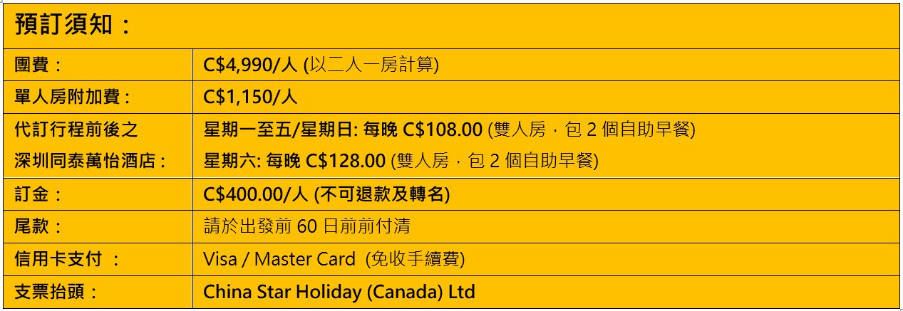 住宿:深圳同泰萬怡酒店或同級 (5星級) – (環島中港通巴士由香港經深圳灣口岸直達酒店門口;距深圳寶安機場10分鐘車程)