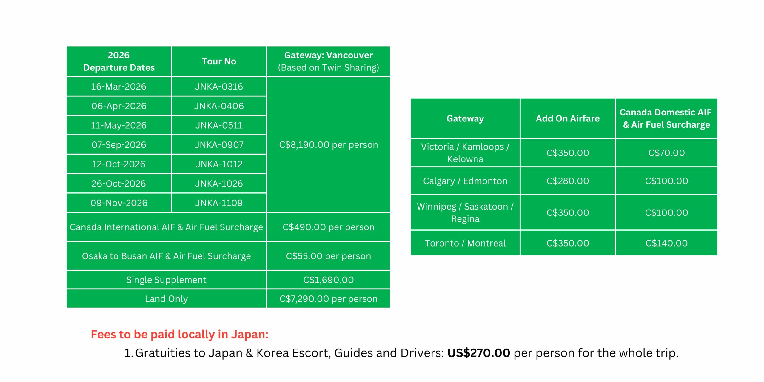Tour leader will depart from Canada